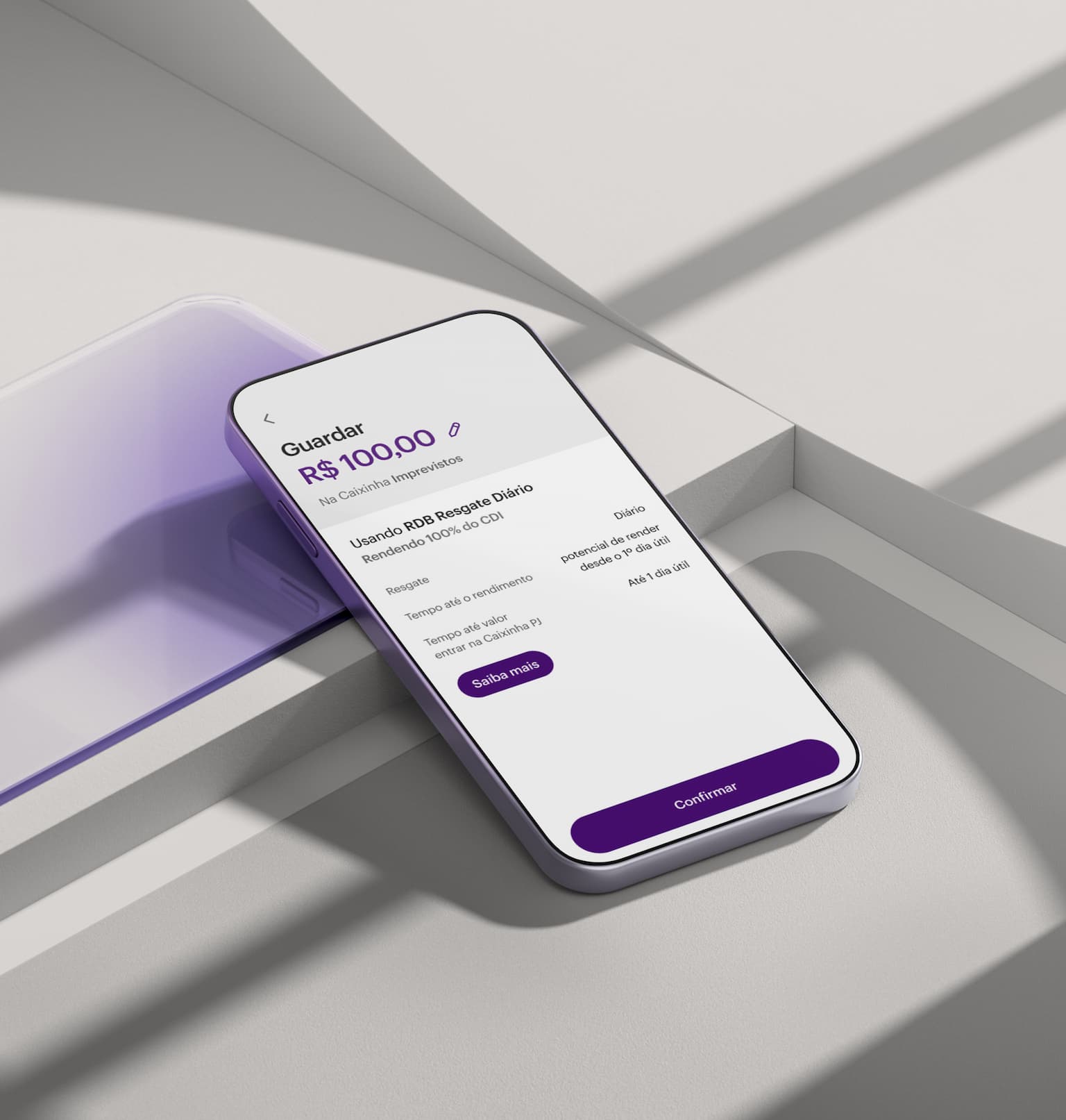 As Caixinhas PJ são uma opção de investimento para guardar o dinheiro do seu negócio na conta Nu Empresas. Você pode criar e personalizar várias Caixinhas direto no seu app, dando nomes para os seus planos e até selecionando uma imagem.