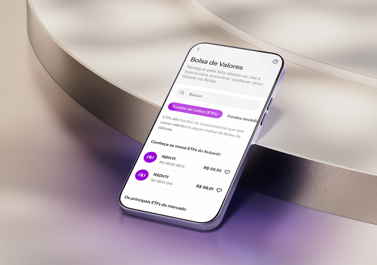 Além de ETFs de diferentes tipos de índices, pelo app do Nubank você também pode investir nos nossos ETFs próprios, criados em parceria com a B3: o Nu Renda Ibov Smart Dividendos (NDIV11) e o Nu Ibov Smart Dividendos (NSDV11). Eles têm como referência o índice Bovespa Smart Dividendos B3 (IBDV).