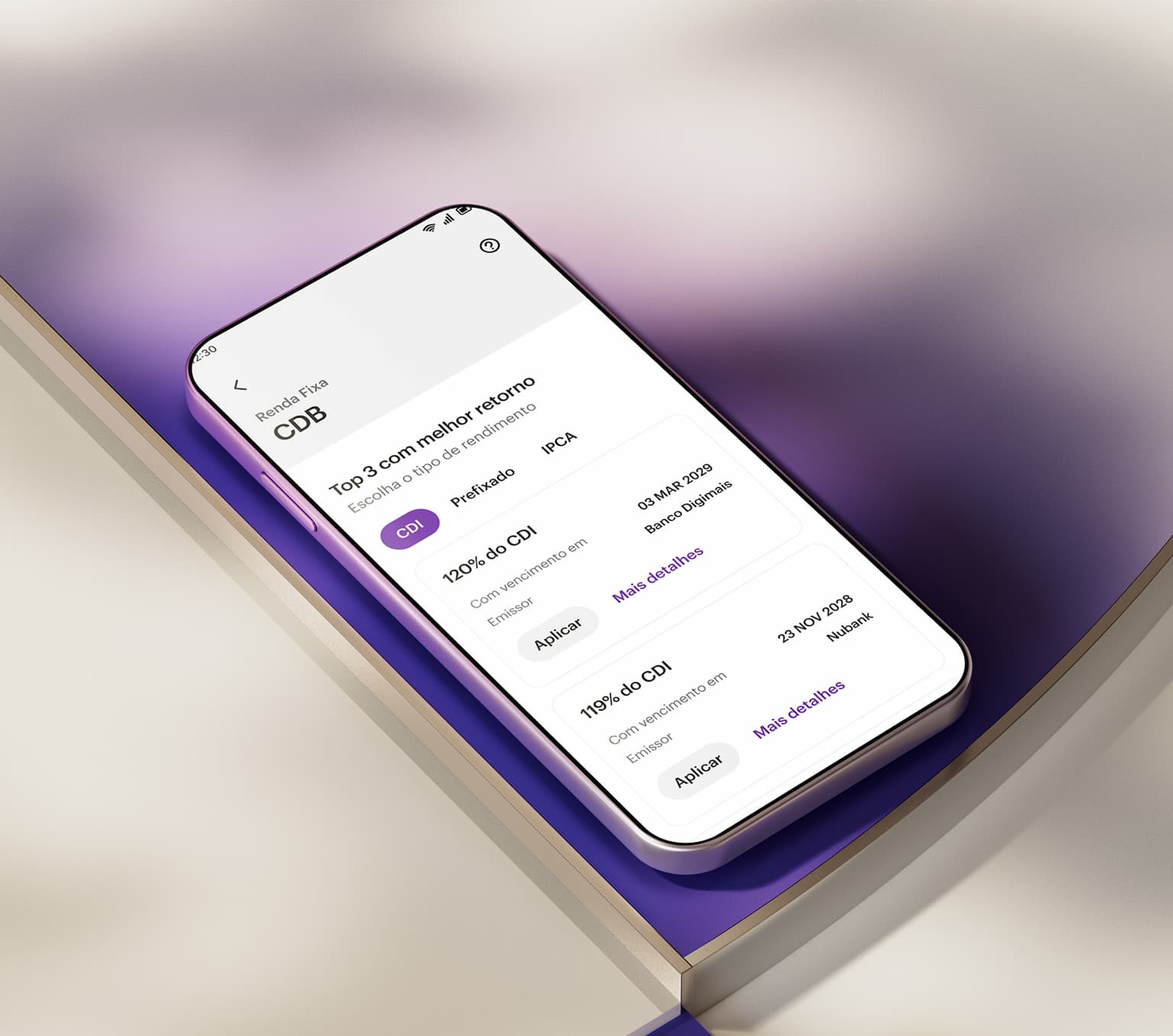 Você pode investir em CDBs direto pelo app do Nubank, em poucos passos e sem complicações.